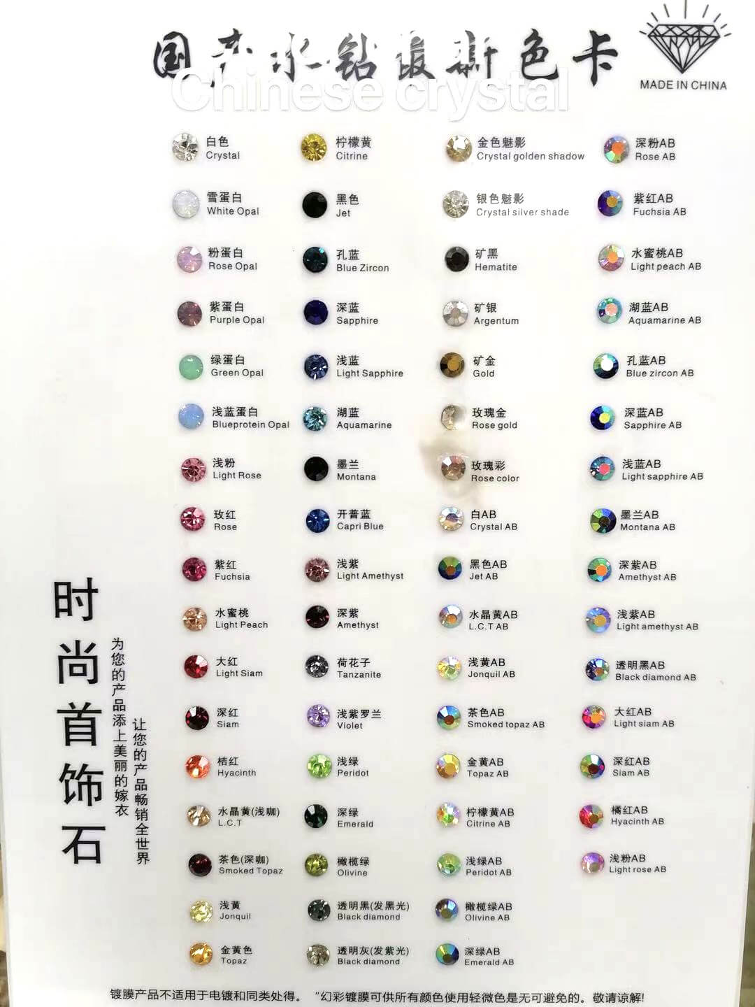 Chinese Crystal Color Chart