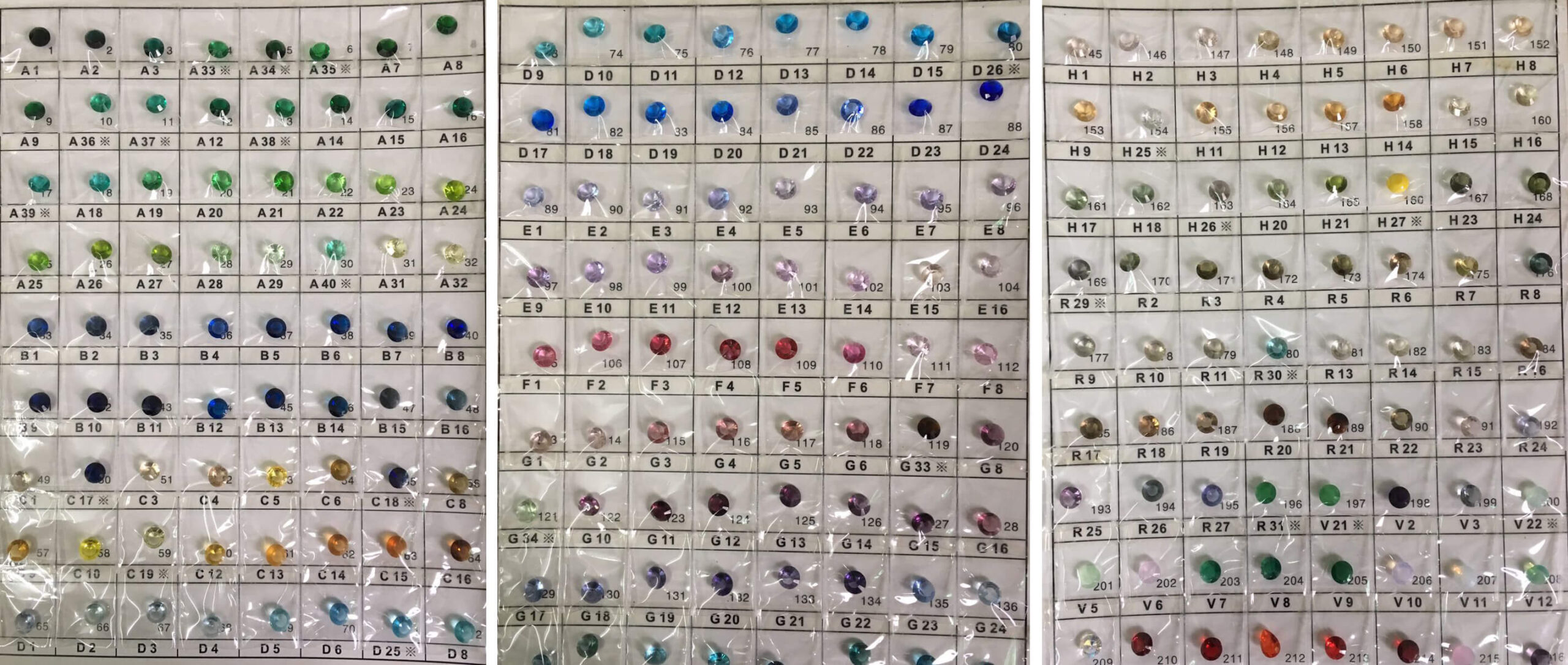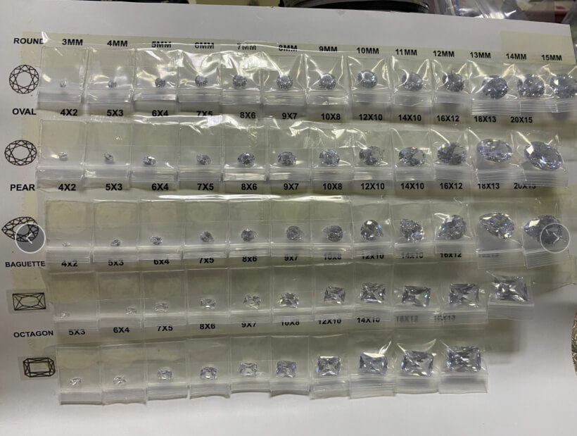All gems in this kit are Cubic Zirconia White AAA quality. There are 142 gemstones in this sample kit